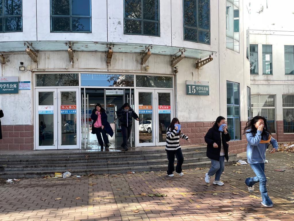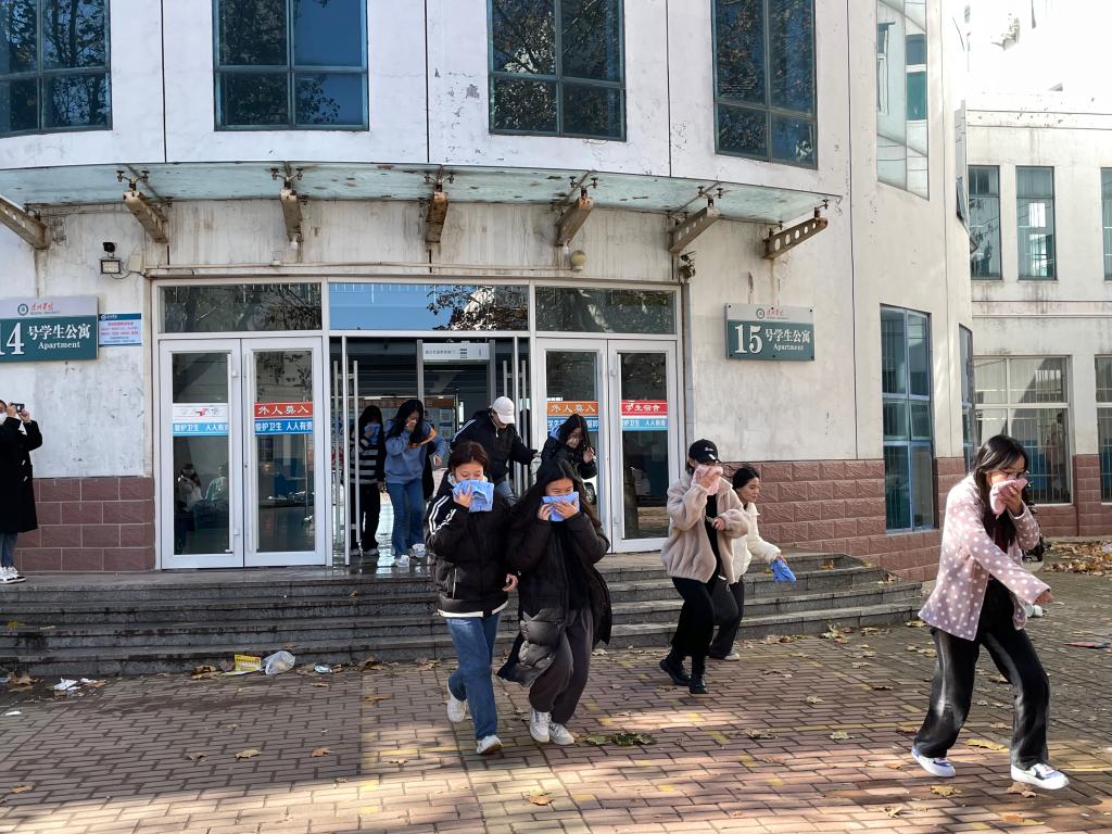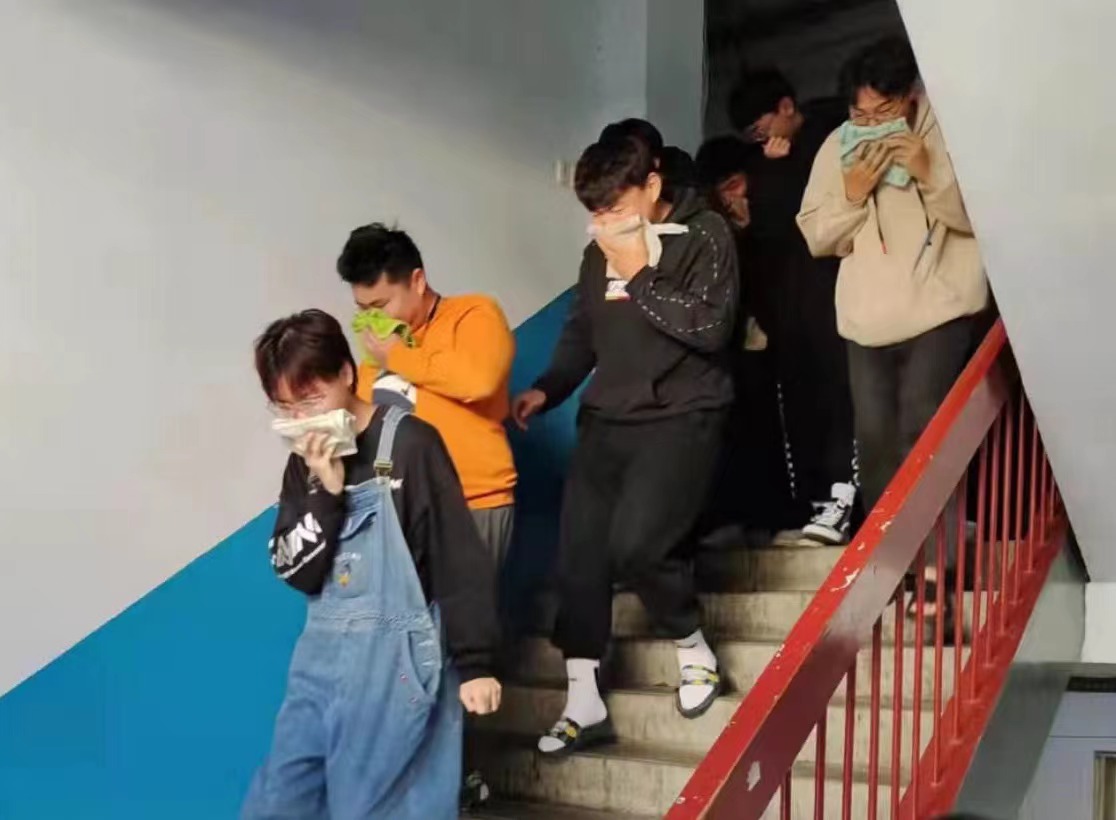 11月9日中午,tyc234cc 太阳成集团组织学生分别在公寓6号楼、14号楼、15号楼开展消防演练。在演练过程中,随着报警信号发出,学生们用湿毛巾捂住口鼻,有序撤离,不拥挤,不喧哗,以最短的时间完成了撤离,并在宿舍楼前进行集合。演练结束后,辅导员为同学们普及了消防安全知识。参演学生纷纷表示,通过这次活动,提高了自己对火灾危害性的认识,同时增强了自我保护意识。